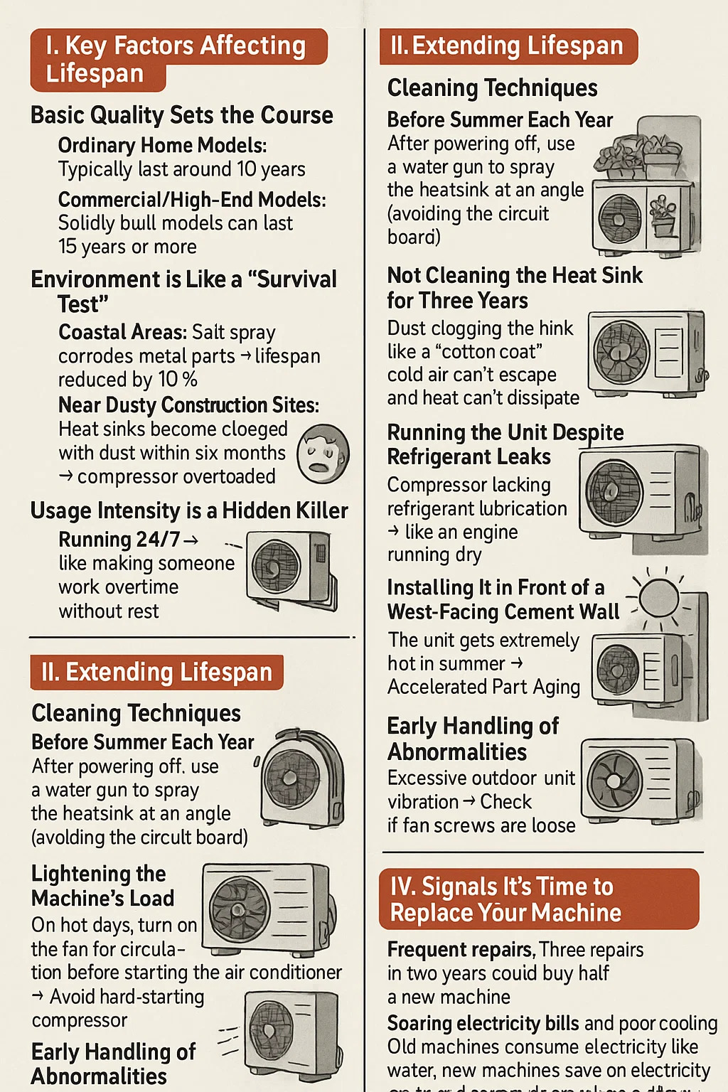 অন্যান্য গৃহস্থালী যন্ত্রপাতির মত, একটি এর জীবনকাল এয়ার কন্ডিশনার কনডেন্সার স্থির নয়, তবে দৈনন্দিন ব্যবহারের অভ্যাস এবং রক্ষণাবেক্ষণ নির্ধারণ করে যে এটি কতক্ষণ স্থায়ী হতে পারে। এখানে মূল পয়েন্ট আছে:
